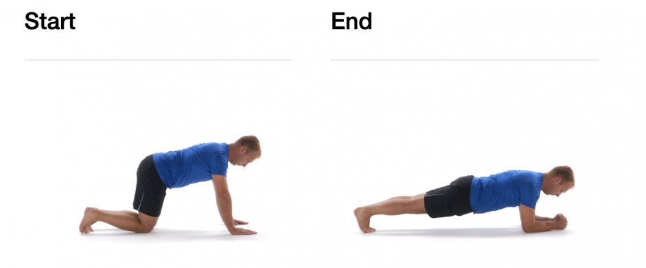 - Start on your elbows and knees, resting on a flat surface with your shoulders directly above your elbows